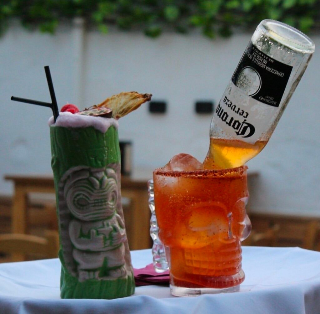 Doble ron con triple seco, almendra y lima, más piña y granadina: potente, cítrico y afrutado (opción con plátano).